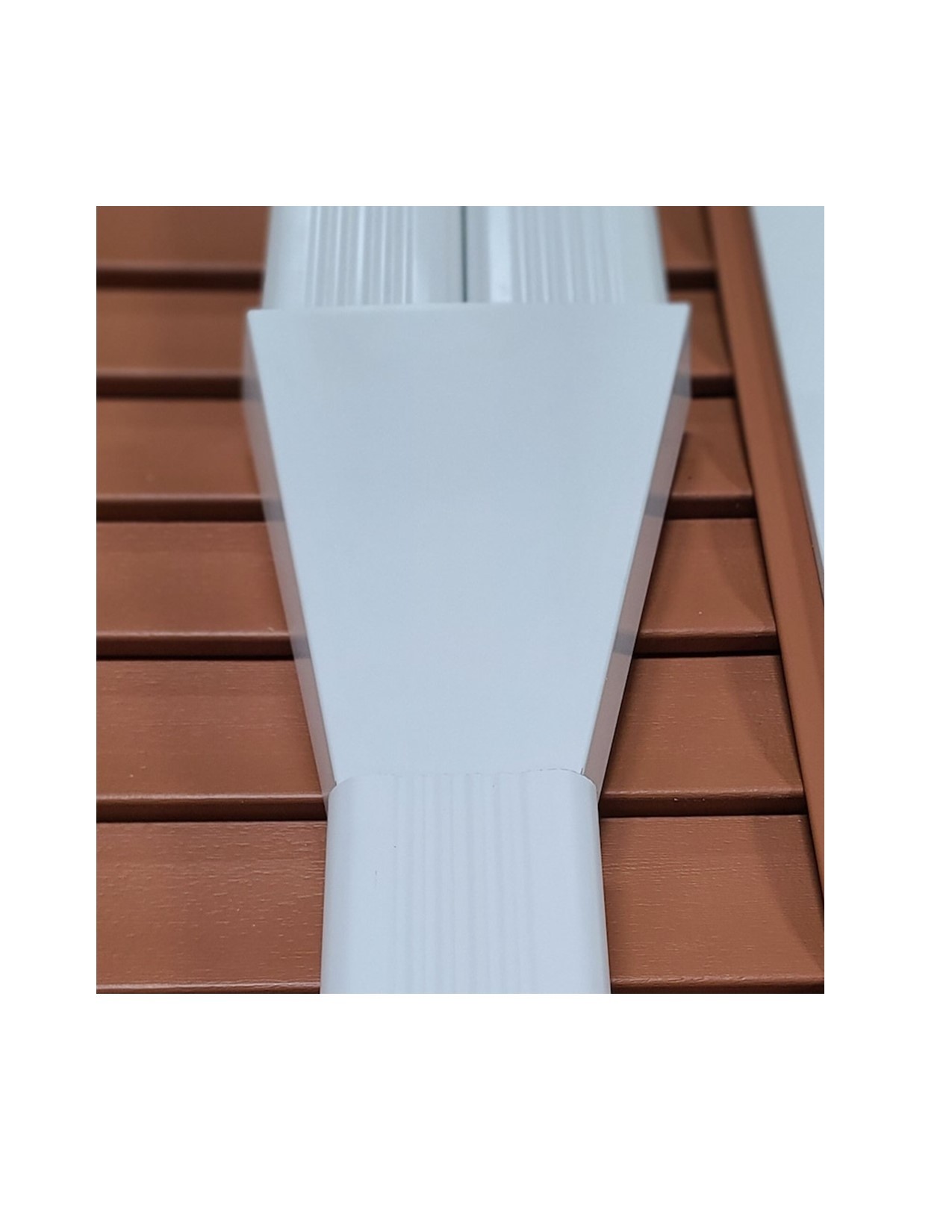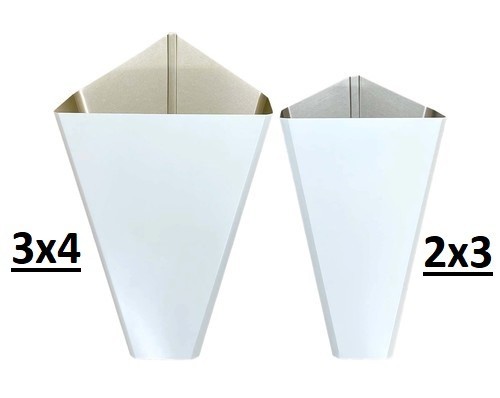4″ downspout funnel combines two 3×4 downspouts into one single outlet. Low gloss white only. Simple, effective drainage solution.