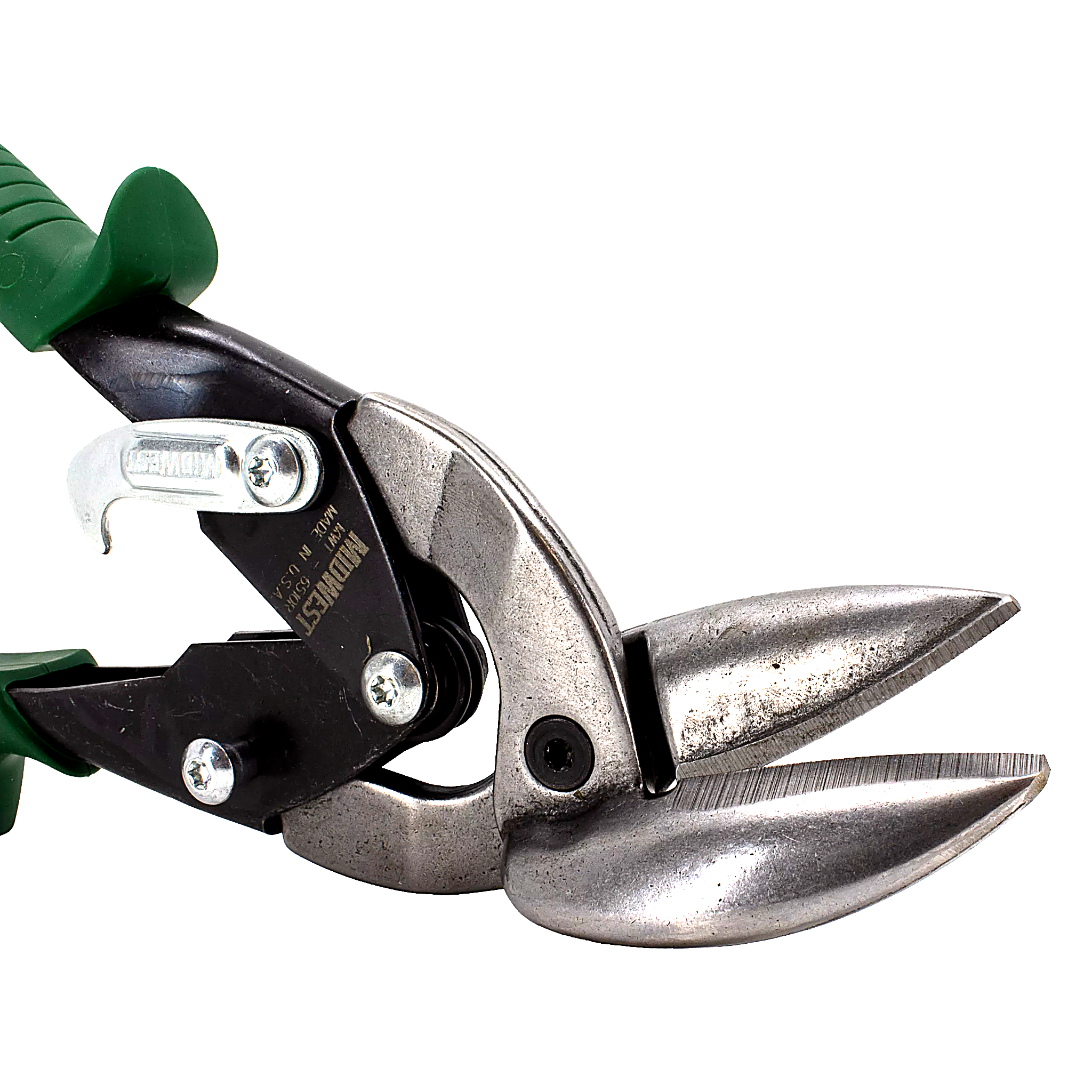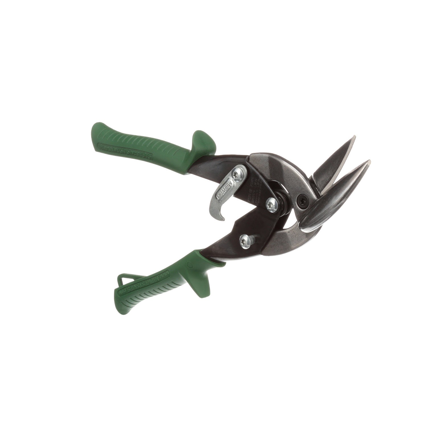 Midwest MWT-6510R offset right cut aviation snips. GLIDETECH forged molybdenum blades, KUSH’N-POWER compound leverage handle. Cuts straight or right curves.